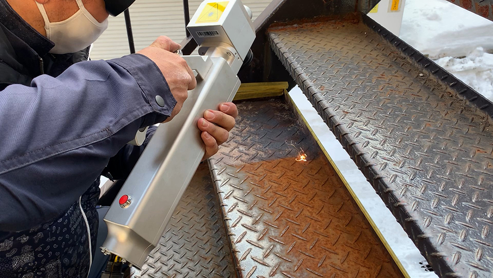 この装置は、高いエネルギー密度のレーザーを照射することで、物体の表面から錆、塗料、酸化物、その他の汚染物質を除去します。
